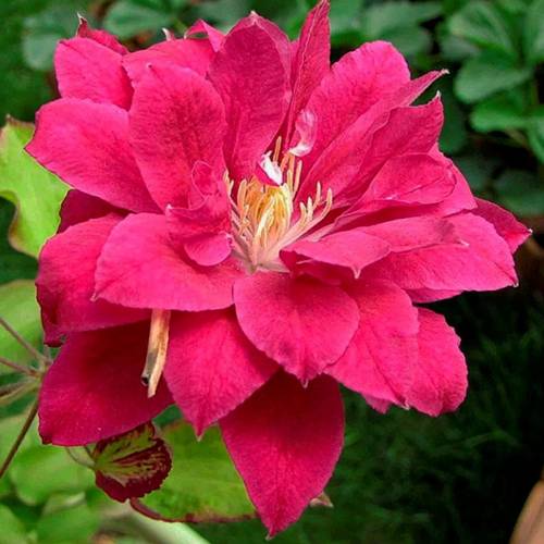 Махровые или полумахровые цветы имеют ланцетовидные чашелистики неправильной формы. В окружении ярко-пурпурных пыльников выделяются тычинки, которые располагаются на нитях сливочного цвета.