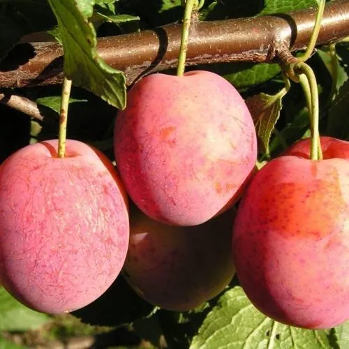 - Удлинённо-округлой формы, тёмно-красного, с белыми точками, цвета, покрыты плотным восковым налётом. Кожица не толстая, приятная. Мякоть крайне сочная, по текстуре – волокнистая, жёлтого цвета. Косточка умеренного размера, вытянуто-овальной формы, легко извлекается;