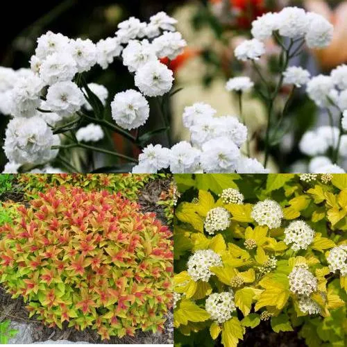 - Спирея «Голдфлейм» (3 года) – декоративный куст с листвой, которая меняет цвет в течение сезона: от оранжево-медной весной до золотистой летом и багряной осенью. Летом куст покрывается шапками нежных розовых цветов, привлекая бабочек.